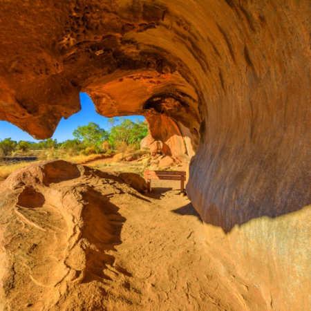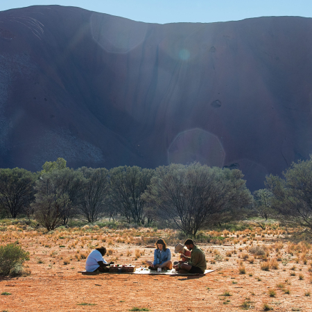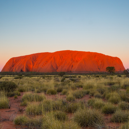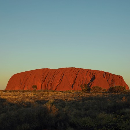UluruUluruLes lève-tôt peuvent admirer le lever du soleil à Uluru. Après un copieux petit-déjeuner à l'hôtel, nous explorons Uluru de près. Le rocher se révèle alors être une sculpture fascinante avec une surface rugueuse qui s'écaille, entourée d'oasis cachés et de plantes inhabituelles. L'après-midi est libre pour se détendre ou explorer à votre guise. Pour le soir, nous recommandons un dîner sous les étoiles en option. Alternativement, visitez le Field of Light, une installation artistique époustouflante composée de plus de 50 000 sources lumineuses solaires qui s'illuminent lorsque l'obscurité descend sur le cœur spirituel de l'Australie.