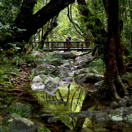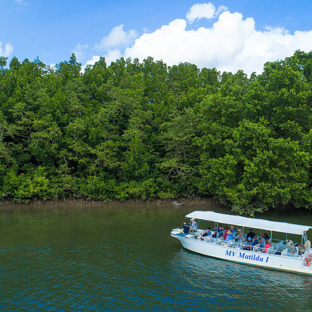 Port DouglasExcursion d'une journée dans la forêt tropicale de DaintreeLa forêt tropicale de Daintree est la plus ancienne forêt tropicale du monde. Notre voyage de découverte commence à Mosman Gorge avec une randonnée le long du ruisseau cristallin. Plus tard, nous profiterons d'une promenade en bateau sur la rivière Daintree – gardez un œil sur les serpents arboricoles et les crocodiles d'eau salée ! Le bus traverse la rivière en ferry – il n'y a pas de pont ici – et nous atteignons Cape Tribulation, une presqu'île isolée avec de magnifiques plages immaculées, des forêts luxuriantes et nous nous arrêtons pour le déjeuner. Notre trajet de retour à Port Douglas serpente à travers la chaîne Alexandra avec des vues spectaculaires sur l'embouchure de la rivière Daintree, l'île Snapper et la mer de Corail.