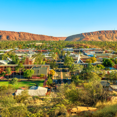 Adelaide Vers Alice SpringsAdelaide – Alice SpringsLe matin, nous prenons un vol d'Adelaide à Alice Springs – et découvrons un autre monde : le Centre Rouge de l'Australie tire son nom de la terre riche en fer. C'est un paysage sec et souvent aride, caractérisé par le chêne du désert, le casoar australien. Encadrée par les MacDonnell Ranges, Alice Springs est une ville inhabituelle. Née comme station de relais pour un câble télégraphique reliant l'Australie à l'Empire britannique via Singapour, elle se présente maintenant comme un fascinant mélange d'esprit pionnier, d'isolement dans l'outback et de culture indigène. À notre arrivée, nous visitons trois sites distinctifs : l'École de l'Air, qui fournit une éducation aux enfants des régions les plus reculées de l'outback via la radio ; le Royal Flying Doctor Service, qui est une bouée de sauvetage importante pour la santé et le bien-être des communautés isolées. Enfin, l'ancienne station télégraphique avec ses bâtiments historiques et le site des sources dont Alice tire son nom. Nous passerons deux nuits au Crowne Plaza Lasseters Hotel. Une fois installés, il y a une option facultative pour faire une balade à dos de chameau au coucher du soleil.